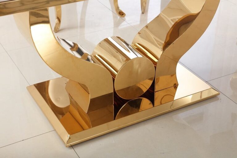 If you’re looking for a luxurious  dining table with a steel golden finish, our premium marble dining tables are perfect for you. Made with only the highest quality materials, our tables are sure to make a statement in any home. Whether you’re entertaining guests or enjoying a family meal, our tables will provide the perfect setting. Browse our selection of Premium luxury  tables today and find the perfect one for your home.