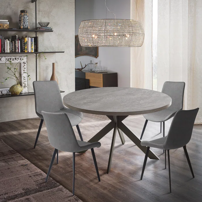 Contemporary flair and sleek style to any space of your home with this elegant dining table set. The round dining table maximizes the usable area of the dining table, and the 47″ size provides ample space for placing cutlery, decorative plants, and desserts. Four carbon steel legs support the stable table. The table bottom is equipped with non-slip rubber pads to protect the floor and maintain stability. The high-grade manufactured wood table is rich and smooth, it offers a warm and inviting nature that welcomes a spot for casual daily dining, ideal for the laid-back eat-in kitchen or a modern dining room. This design effortlessly elevates your aesthetic with unexpected elegance.