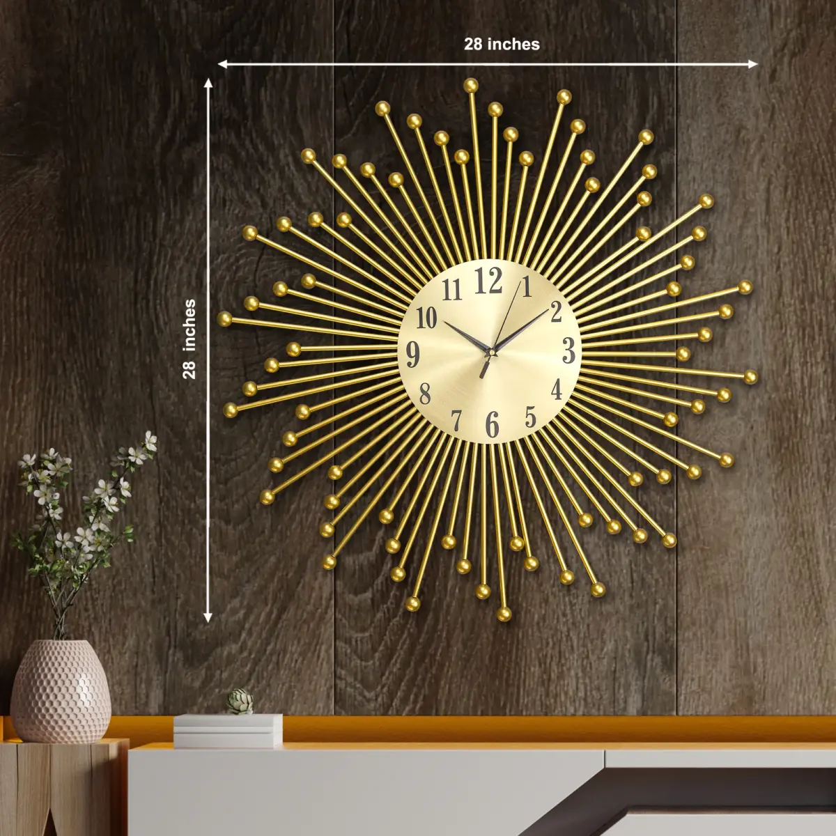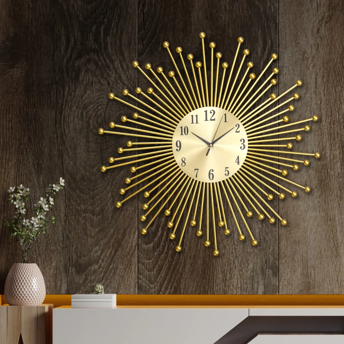Introducing Shining Sun Metal art wall Clock, the ultimate wall clock for your living room decor. Its exquisite design and attention to detail make it a standout piece in any home decoration arrangement. As a designer wall clock, it not only keeps time but also elevates the aesthetic appeal of your space. Hang it on your wall and watch as it becomes the focal point of your room decoration, radiating charm and sophistication.